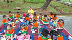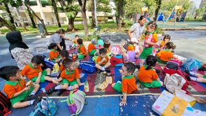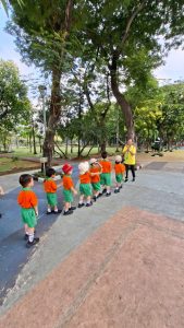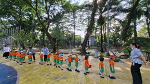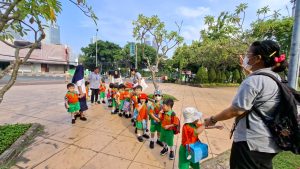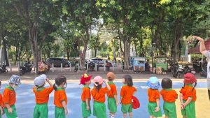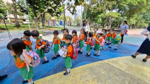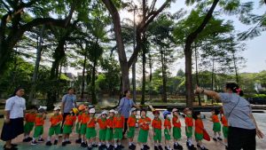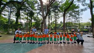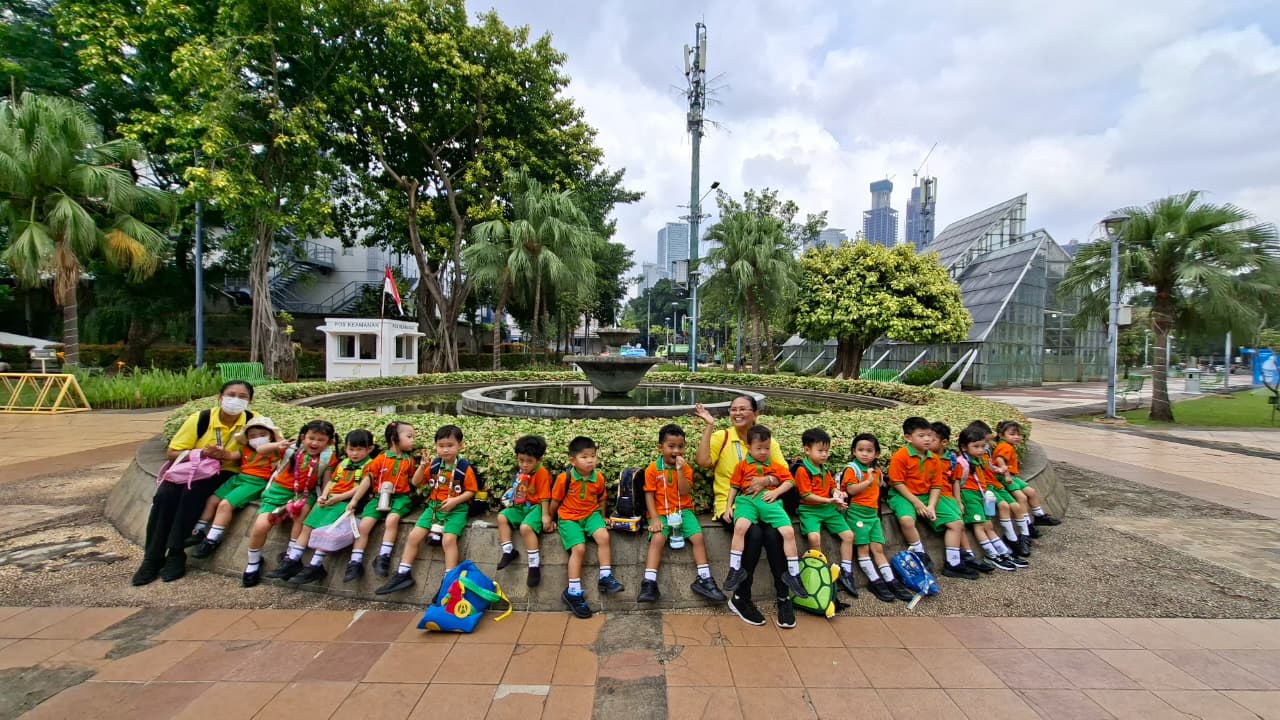 Anak-anak Kelompok Bermain (KB) melakukan field trip ke Taman Menteng pada hari Senin, 13 Oktober 2025 dan Selasa, 14 Oktober 2025, dengan penuh semangat dan rasa ingin tahu. Di sana, mereka belajar mengenal lingkungan sekitar sambil bermain di area hijau yang luas. Anak-anak menikmati berbagai aktivitas seru seperti berjalan di taman, bermain di area permainan, mengamati pepohonan dan bunga, serta belajar menjaga kebersihan lingkungan. Kegiatan ini membantu menumbuhkan rasa cinta alam, kemandirian, dan kebersamaan di antara teman-teman.